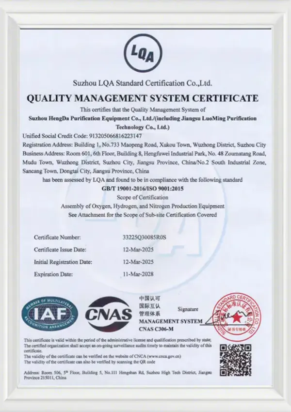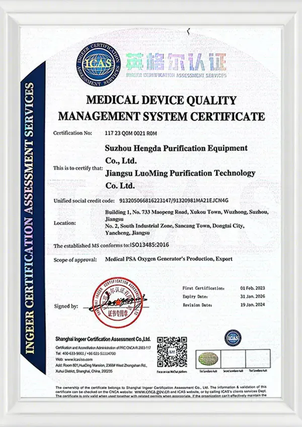 Luoming está especializada en equipos relacionados con gases, destacando en el desarrollo de generadores de oxígeno de tamiz molecular para uso médico, sistemas de oxígeno medicinal, soluciones modulares de generación, equipos de oxígeno de alta pureza para aplicaciones aeronáuticas, sistemas de aire comprimido médico, cilindros de oxígeno portátiles y tecnologías avanzadas de separación y purificación de gases.