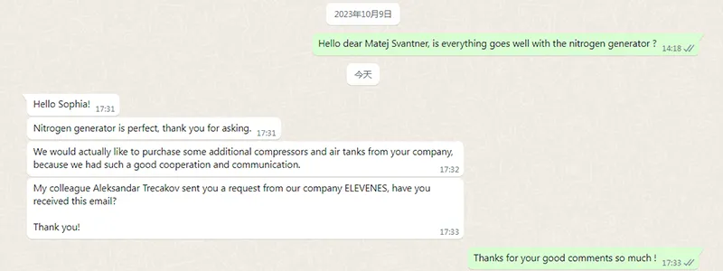 - Comentarios del cliente: «Este generador de nitrógeno se ha convertido en la clave de nuestro proceso de fabricación de precisión. Su excepcional estabilidad nos ha proporcionado un salto cualitativo tanto en la calidad del producto como en la optimización de costes».