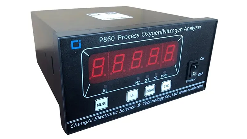 El analizador de oxígeno/nitrógeno P860 es un instrumento de medición inteligente en línea equipado con un avanzado sensor de oxígeno de corriente iónica de un solo chip. Determina la concentración de nitrógeno (N₂%) mediante el cálculo diferencial de 100% - O₂%. Este analizador se utiliza ampliamente en la separación de nitrógeno del aire, la producción de fertilizantes, el procesamiento petroquímico y los procesos de biofermentación.