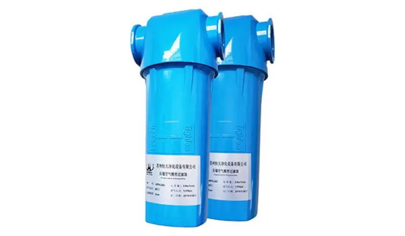 Se instala después del compresor de aire o antes del secador de aire refrigerado. El filtro de grado C elimina partículas sólidas de más de 3 micras y grandes volúmenes de contaminantes líquidos. El contenido de aceite residual se reduce a 5ppm, lo que garantiza un suministro de aire limpio para los equipos posteriores. - Filtro de grado T