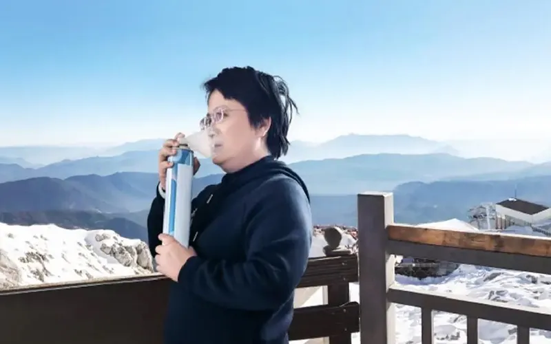 El inhalador de oxígeno portátil no genera oxígeno in situ. El oxígeno de alta concentración se almacena previamente y se libera mediante un sencillo accionamiento manual cuando se necesita, proporcionándolo directamente para su inhalación. Este sistema de circuito cerrado de almacenamiento y suministro de oxígeno a demanda resulta ideal para viajes a gran altitud, montañismo, atención médica domiciliaria y otras aplicaciones móviles o de emergencia en casos de hipoxia.